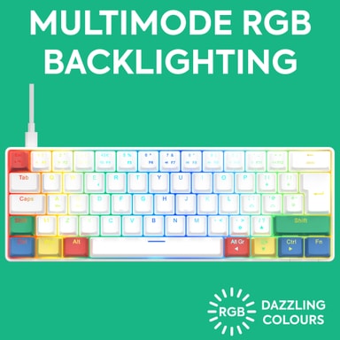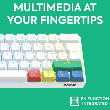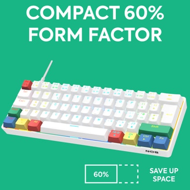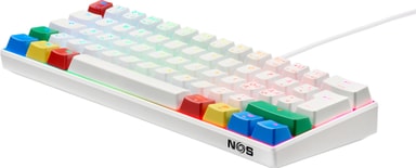 NOS C-450 Mini PRO RGB gamingtastatur tar opp mindre plass på pulten enn ordinære tastatur, uten at det går på kompromiss med gamingytelsen. Det har kun 62 taster, og rammen har et kompakt og plassbesparende design. Videre kan tastaturet skilte med mekaniske røde Outemu-brytere og RGB-lys hvor du kan velge blant 18 forhåndsprogrammerte mønstre for å matche resten av oppsettet ditt. Du kan også la lysene gå i én bestemt farge.