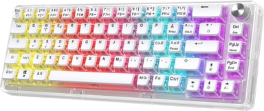 Overvinn fiendene dine med NOS C450 Mini Pudding65 tastatur. Det har en signalfrekvens på 1000 Hz og anti-ghosting som leser trykkene dine nøyaktig og raskt, mens det gjennomsiktige designet og RGB-belysningen gjør det til et prangende tillegg til spillriggen din. Den programmerbare knotten kan tilordnes alle slags funksjoner, mens minidesignet sørger for at du kan ta med deg dette USB-C-tastaturet hvor som helst.