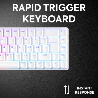 De magnetiske bryterne gir deg en helt ny måte å spille på. Aktiver Rapid Trigger-modus slik at tastene ikke trenger å gå tilbake helt opp til deres utrykte posisjon for å trykkes inn igjen. På den måten kan du maksimere antall tastetrykk per sekund og få et forsprang på konkurrentene dine.