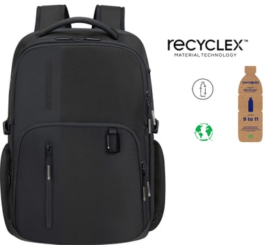 Sorte bedriftsklare Samsonite BIZ2GO PC17,3" ryggsekk er laget av resirkulerte plastikkflasker, noe som gjør den til et utmerket miljøbevisst valg. Den har et komfortabelt moderne design med reflekterende detaljer og fire avdelinger for enkel organisering. Sekken har videre en avtakbar karabinkrok, fjæringssystem og en USB-port for lading på farten. Interne mål er 19 x 46 x 31 cm og den passer bærbare PC-er opptil 17,3".