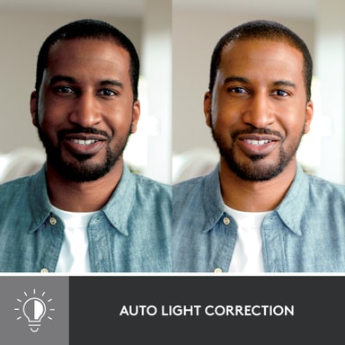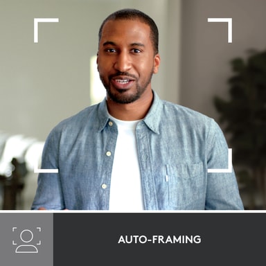 Gjør samtalene dine mer livlige med funksjonen for automatisk innramming som lar deg reise deg og bevege deg rundt under samtalene, slik at du kan presentere mer autentisk. Denne funksjonen er tilgjengelig i Logi Tune (ikke tilgjengelig for Chrome OS).