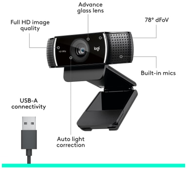Strøm dine videospill, blogg eller annet live-innhold i Full HD 1080p-oppløsning med Logitech C922 Pro Stream webkamera. Den inkluderte bordstativet lar deg filme fra ulike posisjoner.Les mer om produktet