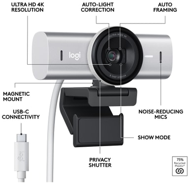 • Logitech MX Brio webkamera (Pale Grey)