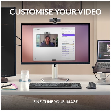 Logitech MX Brio webkamera lar deg vise frem din flotteste versjon av deg selv, takket være den krystallklare 4K-oppløsningen. Samarbeid mer organisk og få bedre arbeidsflyt med Show Mode. Oppretthold absolutt privatliv takket være den manuelle lukkeren.