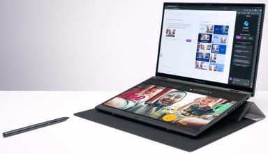 ASUS Zenbook DUO OLED leverer imponerende ytelse og AI-klare funksjoner, slik at selv de mest krevende oppgavene blir en lek. Den tar kreativitet og produktivitet til nye høyder med en lynrask prosessor, dedikert NPU og Intel Arc iGPU. Utforsk uendelige muligheter med 2 TB SSD-lagring, 32 GB RAM og WiFi 7. Med Zenbook DUO OLED har du fremtidens produktivitet i hendene.