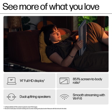 Den 14-tommers IPS-skjermen gir klare og levende bilder, noe som forbedrer seeropplevelsen enten du jobber med dokumenter eller strømmer videoer.