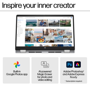 Med Chromebook Plus får du det beste fra Google, med alle favorittappene dine, men med dobbelt så rask hastighet, minne og lagringsplass*. Den leveres fullastet med Google AI og integrert Gemini, og gir deg tilgang til AI-funksjoner som "Hjelp meg å skrive" for umiddelbare utkast, "Hjelp meg å lese" for å oppsummere lange dokumenter på sekunder, og "Magisk viskelær" for å perfeksjonere bildene dine*. Den innebygde sikkerheten er så robust at en Chromebook faktisk aldri har hatt virus*.