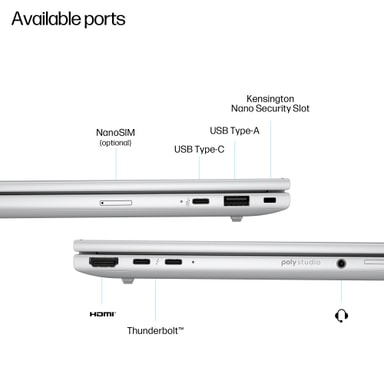 Denne bærbare PCen er konstruert i aluminium og testet etter MIL-STD-810H-standarder, og tilbyr både stil og holdbarhet. Med en vekt på bare 1,39 kg er den svært bærbar. Et baklysbelyst HP Premium Keyboard og presisjonspekeplaten forbedrer brukeropplevelsen, mens IR-personvernkameraet på 5 MP støtter videokonferanser av høy kvalitet og sikker ansiktsgjenkjenningspålogging.
