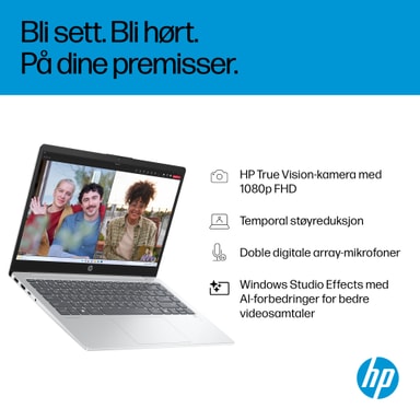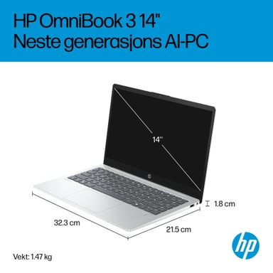 HP OmniBook 3 14" bærbar PC tilbyr kraftig AMD Ryzen™ AI 5-ytelse, samt respektable bilder på Full HD IPS-skjermen. Forbli effektiv og få unnagjort arbeidsoppgavene dine i timesvis takket være det kapable batteriet.Les mer om produktet