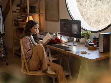 PC-en bruker rask 1 TB PCIe NVMe SSD Gen 4-lagring som lar deg starte opp systemet eller åpne programmer på bare sekunder.