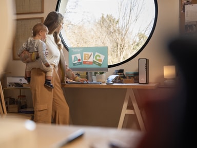 Den stasjonære PC-en er utstyrt med en kraftig 13. generasjons Intel® Core™ i3-13100-prosessor som kan kjøre flere krevende programmer samtidig. Ved behov kan prosessoren bytte til en raskere 4,5 GHz turbomodus.