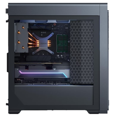 Denne stasjonære PCen har et valgfritt verktøyfritt glasspanel for enkel oppgradering av grafikkortet eller utvidelse av lagringsplassen.