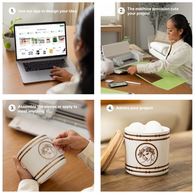 Du kan la deg inspirere av det enorme biblioteket av design tilgjengelig i Design Space-appen, og du kan lagre dine egne kreasjoner for fremtidig referanse eller for at andre skal kunne nyte dem!