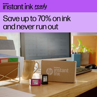 "Kjøp nå og få 3 ekstra måneder med Instant Ink. Gjelder ved kjøp av en Instant Ink-kompatibel HP DeskJet. Under installasjonen av skriveren, registrer deg for Instant Ink og oppgi koden SPRING26OFFER innen 30. april 2026. Les mer her:"
