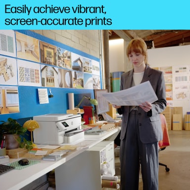 HP OfficeJet Pro 9720e AIO Inkjet skriver gir deg rask og effektiv utskrift, skanning, og kopiering. Den kan skrive ut i opptil A3-format, og følger P3-skalaen for å gi deg presise farger. Den kan enkelt styres via WiFi, Apple AirPrint, eller apper.Les mer om produktet