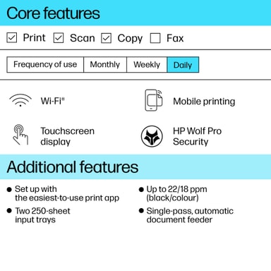 - Kapasitet for A4-papirinnskuffer: 250+250 ark