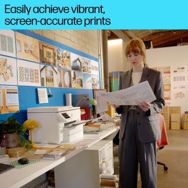 HP OfficeJet Pro 9730e AIO Inkjet skriver gir deg rask og effektiv utskrift, skanning, og kopiering. Den kan skrive ut i opptil A3-format, og følger P3-skalaen for å gi deg presise farger. Den kan enkelt styres via WiFi, Apple AirPrint, eller apper.Les mer om produktet