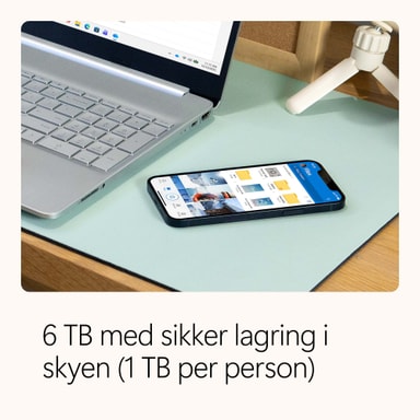 Fra å oppdatere CV-en på sekunder med Copilot i Word til å planlegge ferier med reiseplaner generert av kunstig intelligens1 – Microsoft 365 hjelper deg å hoppe over rutinearbeidet og fokusere på det som virkelig betyr noe. Med sikker skylagring, premiumapper og intelligente funksjoner som fungerer på tvers av alle enhetene dine, bruker du mindre tid på å håndtere oppgaver- og mer tid på å nå målene dine. Det er ekte produktivitet