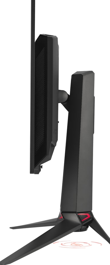 Med DisplayPort 2.1 og HDMI 2.1-tilkoblinger støtter denne skjermen moderne GPU-er og konsoller. Den justerbare stativet tillater vippe-, sving-, pivot- og høydejusteringer for optimal seerkomfort.
