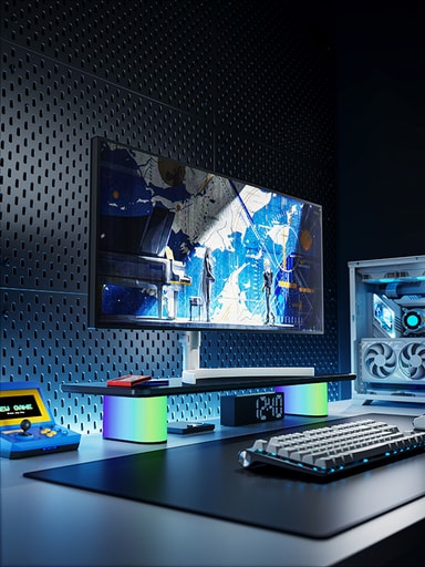 Piranha RGB skjermstativ kombinerer ergonomisk design og levende stemningsbelysning for å løfte arbeidsplassopplevelsen din. Den leveres med tre tilpassbare RGB-moduser og et elegant skjult lyshjul for å kontrollere stemningen. Med antiskliputer for økt stabilitet og enkel montering, gir den en perfekt balanse mellom stil og ytelse.