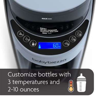 Baby Brezza Formula Pro Advanced melkerstatning- og vellingmaskin FRP0133 lager en perfekt flaske med morsmelkerstatning til babyen din på null komma niks. Du trenger ikke lenger å måle eller bekymre deg for temperaturen. Bare velg mellom 60 og 300 ml morsmelkerstatning og en av tre temperaturinnstillinger, og la maskinen gjøre alt arbeidet for deg.