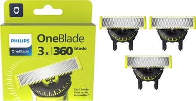 Få din OneBlade eller OneBlade Pro barbermaskin tilbake i toppform med den tettsittende barberingen du fortjener med Philips OneBlade 360 barberblader QP430/50 og deres evne til å barbere i alle retninger. Pakken inneholder tre barberblader.Les mer om produktet