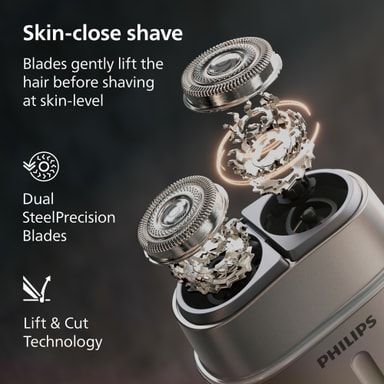 Lift & Cut-teknologien løfter håret forsiktig før kutting, noe som gir en tettere barbering samtidig som den bidrar til å beskytte huden.