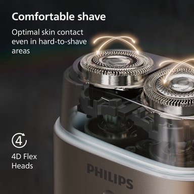 Den har doble SteelPrecision-blader som kutter hår effektivt i alle retninger, kombinert med 4D flex-hoder som beveger seg med ansiktets konturer.