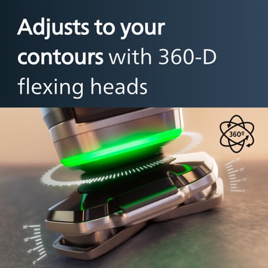 Klipp håret nær huden din med presisjon og komfort med barbermaskinens 360° bøyende hoder og Dual SteelPrecision-blader.