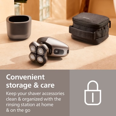 Philips Head Pro 7000 Series barbermaskin HS7980/15 gir en tett og behagelig barbering med et 360° bøybart hode, ComfortCut-blad og PowerAdapt-sensor, med våt- og tørrbruk, 90 minutters driftstid og praktisk tilbehør for enkelt vedlikehold.Les mer om produktet