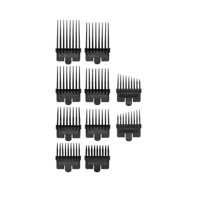 Den er komplett med 8 avstandskammer fra 0,8 til 25 mm, samt avstandskammer for å stille inn klippelengden rundt venstre og høyre øre.