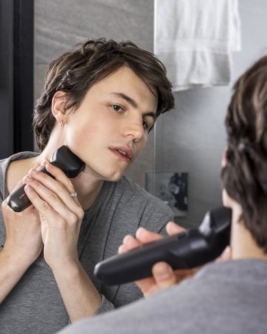 Multigroomeren leveres med tre stylingtilbehør: en foliebarbermaskin i full størrelse, et 38 mm T-blad og en roterende nese- og øretrimmer. Du kan også bruke syv kamtilbehør – en justerbar stubbkam og seks faste barberingskammer – for å oppnå den stilen du vil ha.