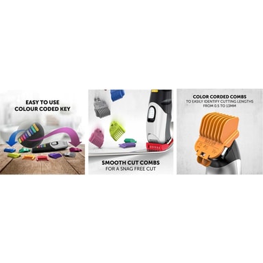 MATCH & STYLE TRIMMER KIT- FARGEKODEDE KAMMER FOR ENKELT VALG: Fargekodede kammer slik at du enkelt kan velge og huske lengden på skjegget ditt.- JEVNT KUTT: Kammer med avrundet kant for flokfri skjeggtrimming.Les mer om produktet
