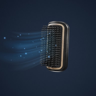 Myk, polstret børste for skånsom hårstyling med fleksible børstehår som glir gjennom krøllene og løser opp floker mens du tørker og gjør håret synlig glatt og glansfullt.