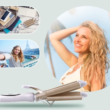Lett å krølle håret: Takket være utformingen av krølltangen med tre sylindre, er det enkelt og raskt å krølle håret og få vakre strandbølgekrøller.