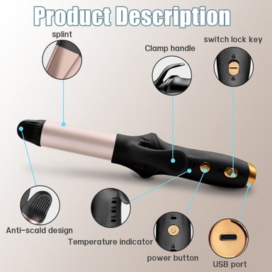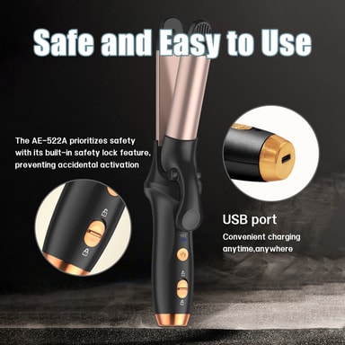 Trygg og enkel å bruke: Krølltangen tilbyr sikker bruk takket være den innebygde sikkerhetslåsefunksjonen som forhindrer utilsiktet aktivering. LED-displayet viser tydelig temperaturen, noe som muliggjør nøyaktig varmekontroll. Krølltangens ergonomiske design og trådløse funksjonalitet gjør den enkel og praktisk å bruke.