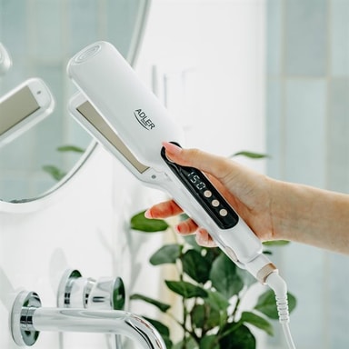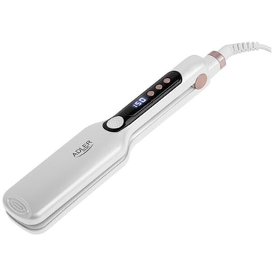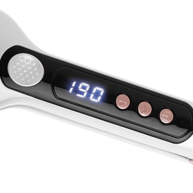 Med denne brede rettetangen kan du tilpasse temperaturen til din hårtype takket være de sju ulike temperaturinnstillingene. Det tydelige LCD-displayet gjør det enkelt å overvåke og justere temperaturen under bruk. De keramiske platene sørger for jevn varmefordeling, noe som minimerer risikoen for hårskader og gir en jevn stylingopplevelse. De brede platene gjør det mulig å glatte større hårseksjoner på kortere tid, noe som sparer både tid og krefter.