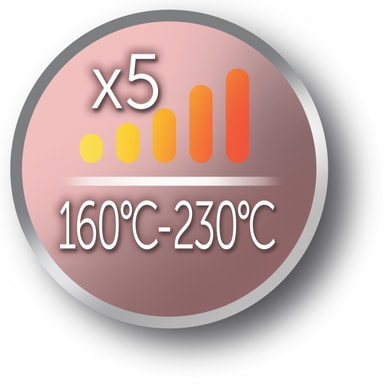 Finn den temperaturen du ønsker med 5 temperaturinnstillinger mellom 160 og 230 grader.