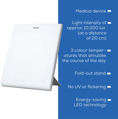 Med 10 000 lux (avstand på 10 cm), er Beurer-lampen din kilde til lys og positiv energi.
