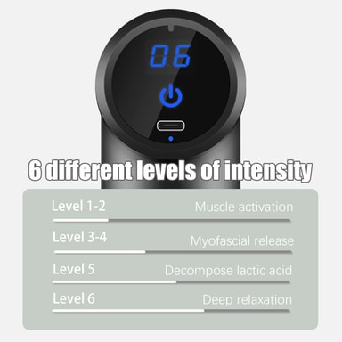 6 forskjellige intensitetsnivåer: Velg mellom alle nivåer, fra lett til dyp massasje.