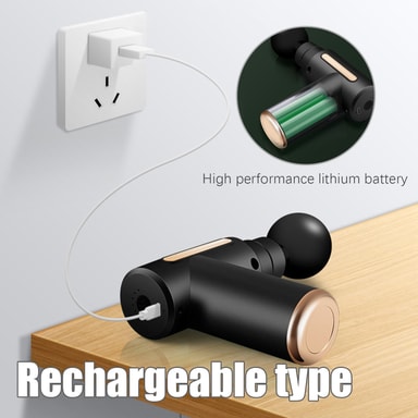 Brukervennlig håndtering: Jevn og enkel styring med knapp og indikatorlys. Massasjepistolen er oppladbar og betjenes trådløst og uten problemer med én hånd.