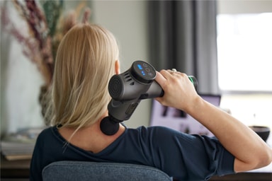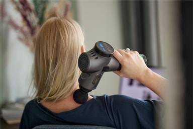 Forbedre. muskelhelsen din med en re. Professional massasjepistol. Den har 4 massasjehoder, 3 hastigheter, 20 intensitetsnivå og et ergonomisk, lettvektig design.Les mer om produktet