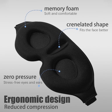 Sovemasken er laget av ultramykt materiale og veldig behagelig å ha på. Masken blokkerer effektivt lys og er utformet slik at den ikke trykker mot øynene. Du kan fortsatt blunke som vanlig. Inkluderer ørepropper.Les mer om produktet