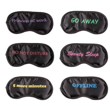 Øyemasken letter søvnen ved å fjerne lyset og på denne måten fjerner den en forstyrrelse. På maskene er det ulike morsomme tekster og meldinger, disse sendes usortert.