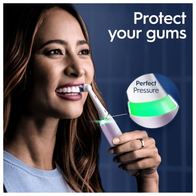 Oral-B iO 9s lærer deg å holde et optimalt trykk takket være dens smarte trykksensor som signaliserer med et rødt, hvitt eller grønt lys som lar deg vite om du pusser med helt riktig trykk, litt for mykt eller litt for hardt.