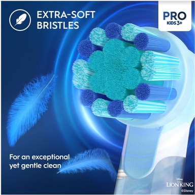 Oral-B Vitality Pro Kids Lion King elektrisk tannbørste 297257 er utviklet for barn fra 3 år og oppover. Den har et lite, rundt børstehode og ekstra myk bust for skånsom pleie. Den har to børstemoduser, fire utskiftbare klistremerker, 40 minutters brukstid og et reiseetui med Løvekonge-tema. Den er kompatibel med Disney Magic Timer-appen og gjør børstingen effektiv og morsom for barn.