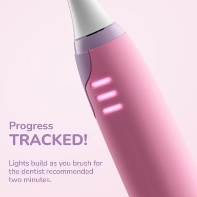 Tannbørsten har en praktisk fremdriftsmåler som sikrer at barna pusser tennene i de tannlegeanbefalte to minuttene.