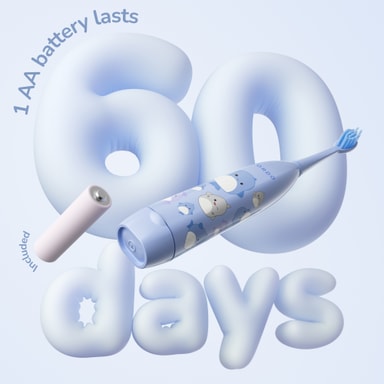 Den elektriske tannbørsten drives av et enkelt AA-batteri (inkludert med tannbørsten) og varer i opptil 60 dager.