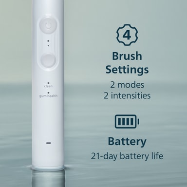 Philips Sonicare 4000 Series elektrisk tannbørste HX404441 bruker sonisk teknologi, har en trykksensor og tilbyr opptil 21 dagers batterilevetid. Den leveres med 2 rengjøringsmoduser, 4 hastigheter og 2 intensitetsnivåer for en grundig rengjøring.Les mer om produktet