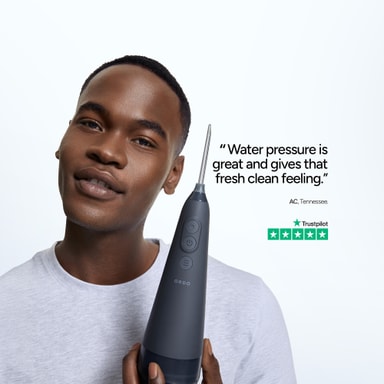 Vannflosseren har en 260 ml vanntank og et buet, riflet design med en slank dyse for presis rengjøring. Praktisk plasserte trykknivåer og av/på-knapper på fremsiden sikrer enkel kontroll.
